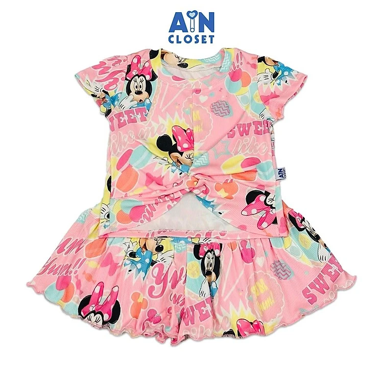 Bộ quần áo Ngắn bé gái hoạ tiết Chuột Mina Hồng Thun cotton - AICDBGZTSI7Y - AIN Closet