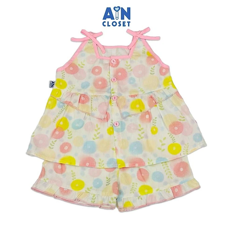 Bộ quần áo Ngắn bé gái họa tiết Cỏ Đồng Tiền Hồng Cotton - AICDBGSKQMJR - AIN Closet