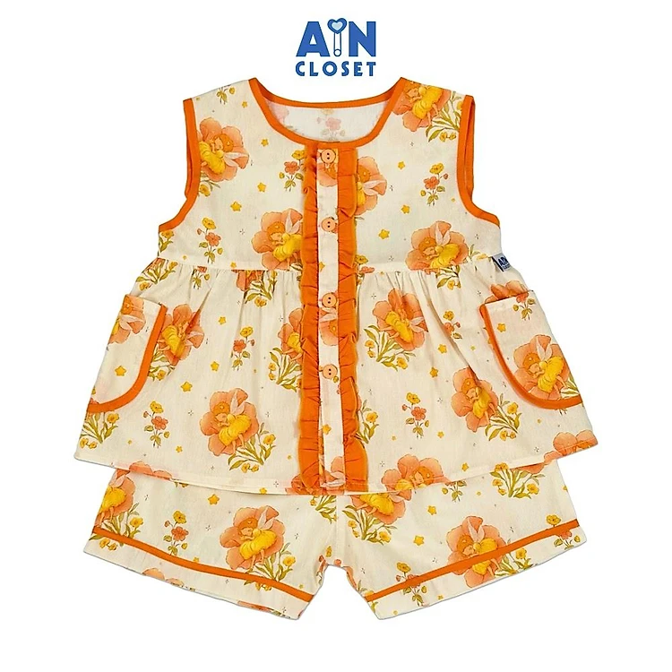 Bộ quần áo Ngắn bé gái họa tiết Cô Tiên Hoa Cam cotton - AICDBGC6TW8U - AIN Closet