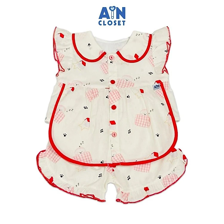 Bộ quần áo Ngắn bé gái họa tiết Cún Con Đang Ngủ Cotton - AICDBGRKWIMT - AIN Closet