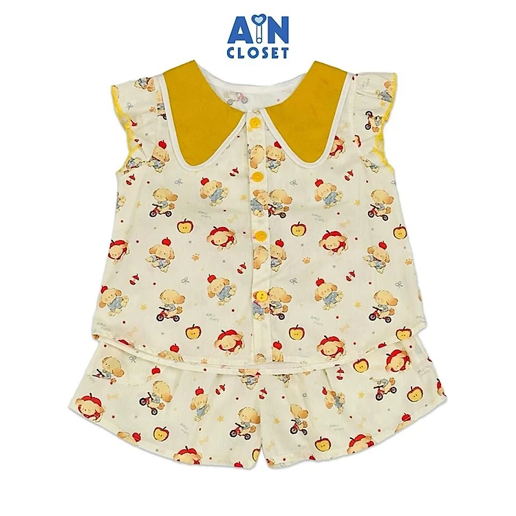 Bộ quần áo Ngắn bé gái hoạ tiết Cún Vàng Cotton - AICDBGCUMMLU - AIN Closet
