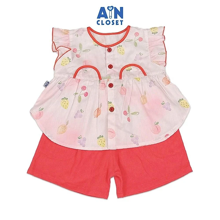 Bộ quần áo Ngắn bé gái hoạ tiết Dâu Đào Hồng Cotton - AICDBGC78MBP - AIN Closet