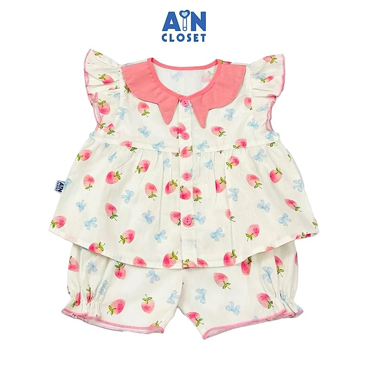 Bộ quần áo Ngắn bé gái họa tiết Dâu Snow Pink Cotton - AICDBGUTYO0H - AIN Closet