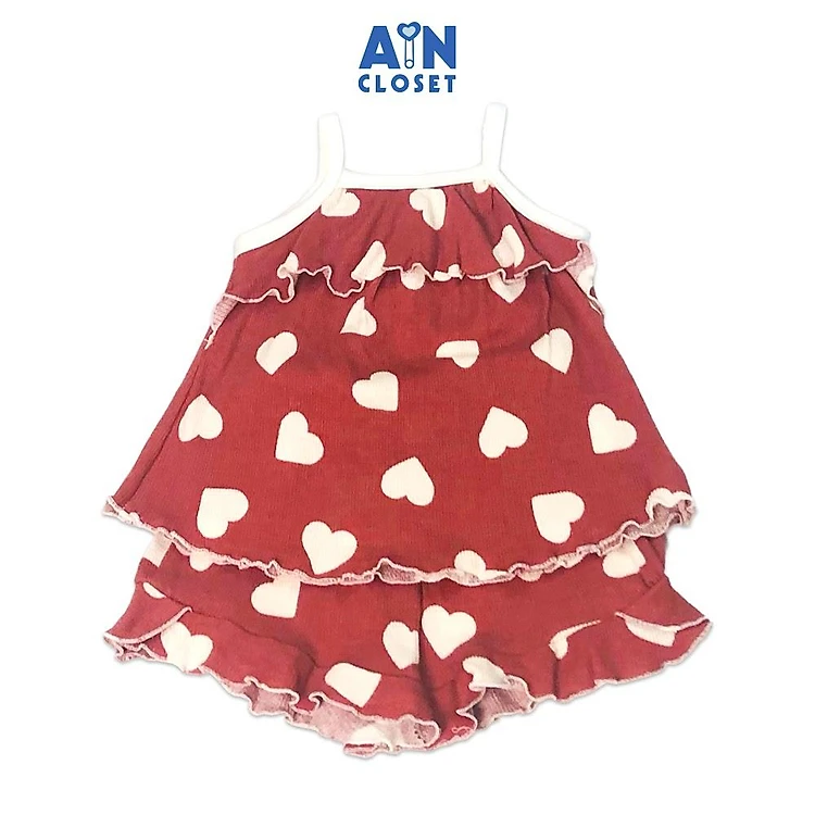 Bộ quần áo ngắn bé gái họa tiết dây Tim đỏ cotton waffle - AICDBGEF7ZTY - AIN Closet
