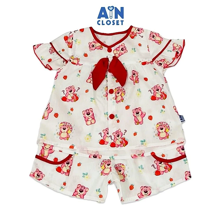 Bộ quần áo Ngắn bé gái họa tiết Gấu Losto Đỏ cotton - AICDBGOA9UQ4 - AIN Closet