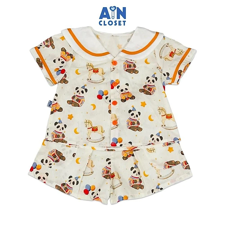Bộ quần áo Ngắn bé gái hoạ tiết Gấu Trúc Cam Cotton - AICDBG0AV9OG - AIN Closet