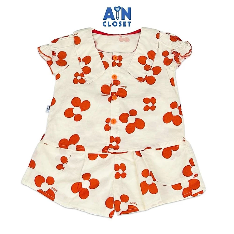 Bộ quần áo ngắn bé gái họa tiết Hoa 4 cánh đỏ cotton - AICDBGBL384Z - AIN Closet