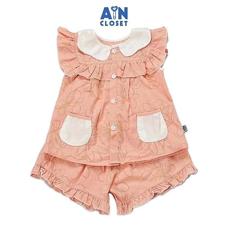 Bộ quần áo ngắn bé gái họa tiết Hoa Cánh Bướm Hồng cotton hạt - AICDBGORDWZV - AIN Closet