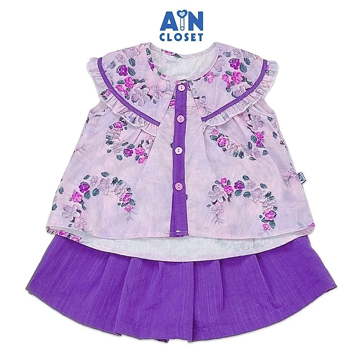 Bộ quần áo ngắn bé gái họa tiết hoa Chuỗi Ngọc tím cotton - AICDBGD2VN32 - AIN Closet