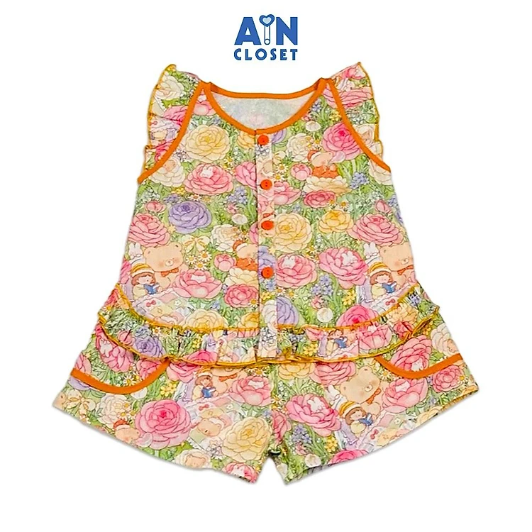 Bộ quần áo Ngắn bé gái họa tiết hoa Hồng Cam Cotton - AICDBG1ALMNJ - AIN Closet