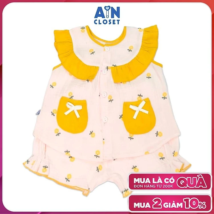 Bộ quần áo ngắn bé gái họa tiết hoa Hướng dương nhí vàng xô muslin - AICDBGYLMBPO - AIN Closet