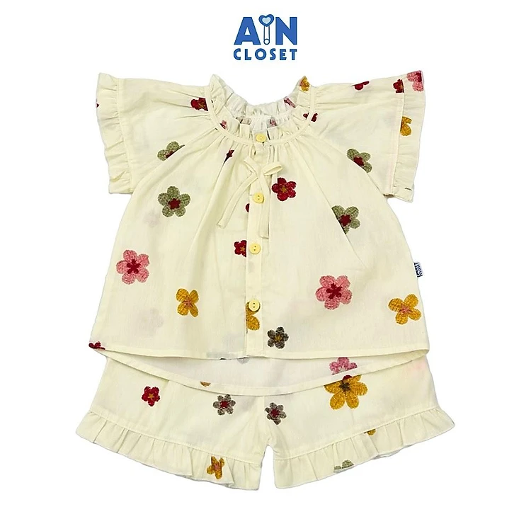 Bộ quần áo Ngắn bé gái họa tiết Hoa Măng Cụt Trắng ngà Cotton - AICDBGD4YYE4 - AIN Closet