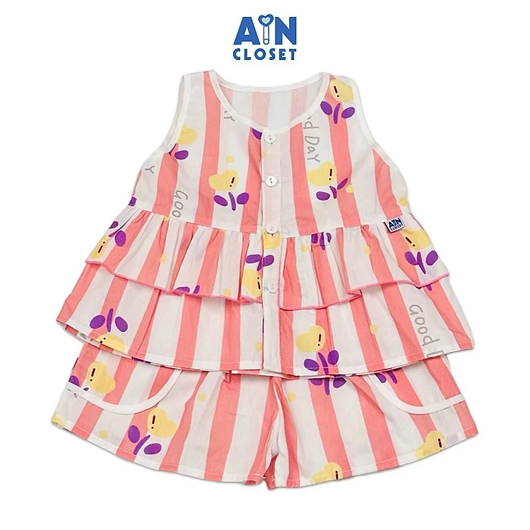Bộ quần áo Ngắn bé gái họa tiết Hoa May Mắn Kẻ Hồng Cotton - AICDBGQSV8JH - AIN Closet