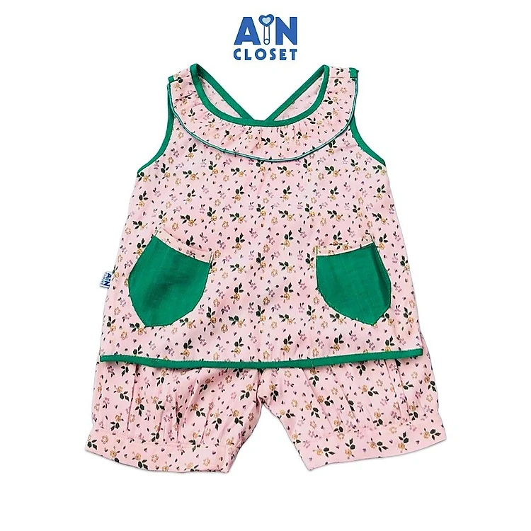 Bộ quần áo ngắn bé gái họa tiết Hoa nhí hồng túi xanh - AICDBG2SFD4Z - AIN Closet