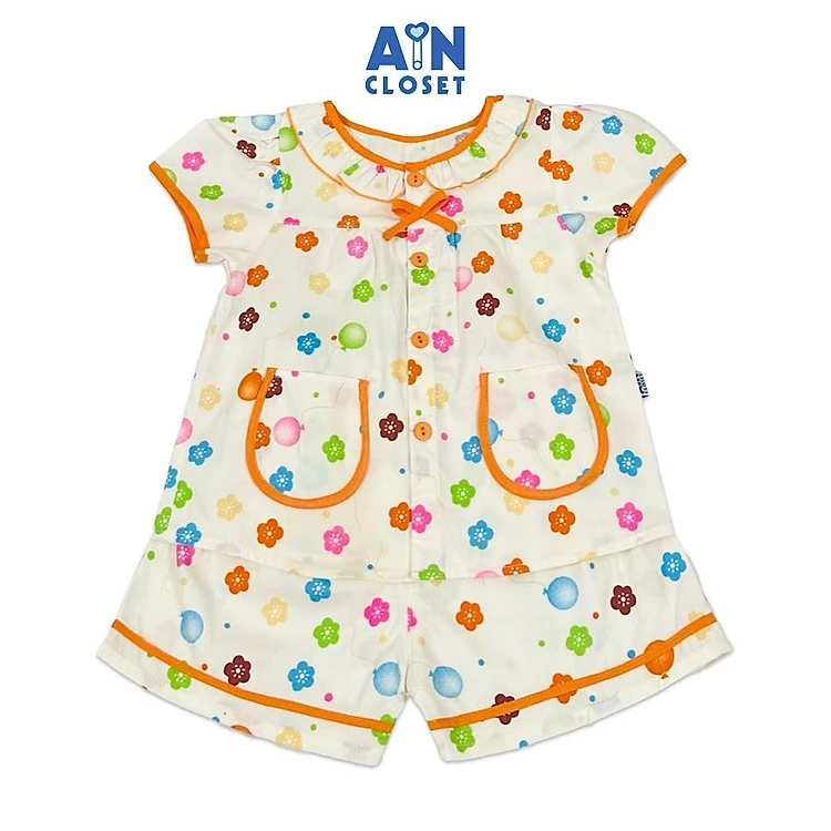 Bộ quần áo Ngắn bé gái họa tiết Hoa Sao viền cam cotton - AICDBGGZUJXU - AIN Closet