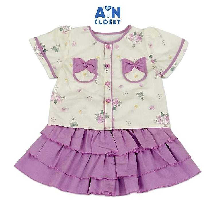 Bộ quần áo Ngắn bé gái họa tiết Hoa Sim Tím Cotton - AICDBGEVTWLB - AIN Closet