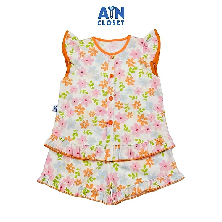 Bộ quần áo Ngắn bé gái hoạ tiết Hoa Sử Quân Tử Cam Cotton - AICDBGGXNO2F - AIN Closet