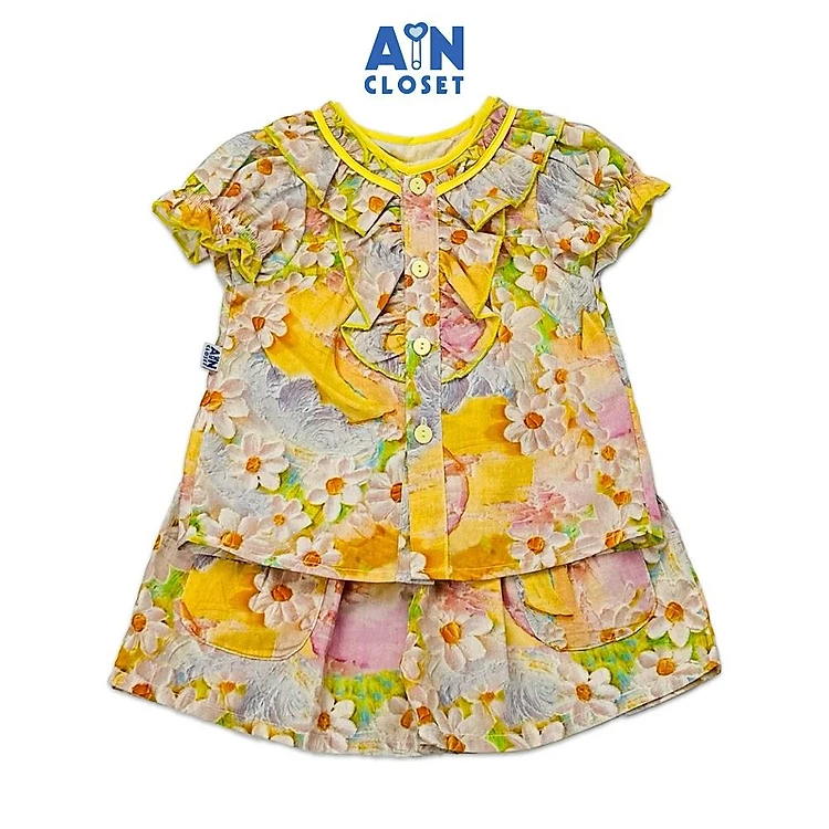 Bộ quần áo ngắn bé gái họa tiết hoa Thủy Tiên 3D trắng - AICDBG0LQPYT - AIN Closet