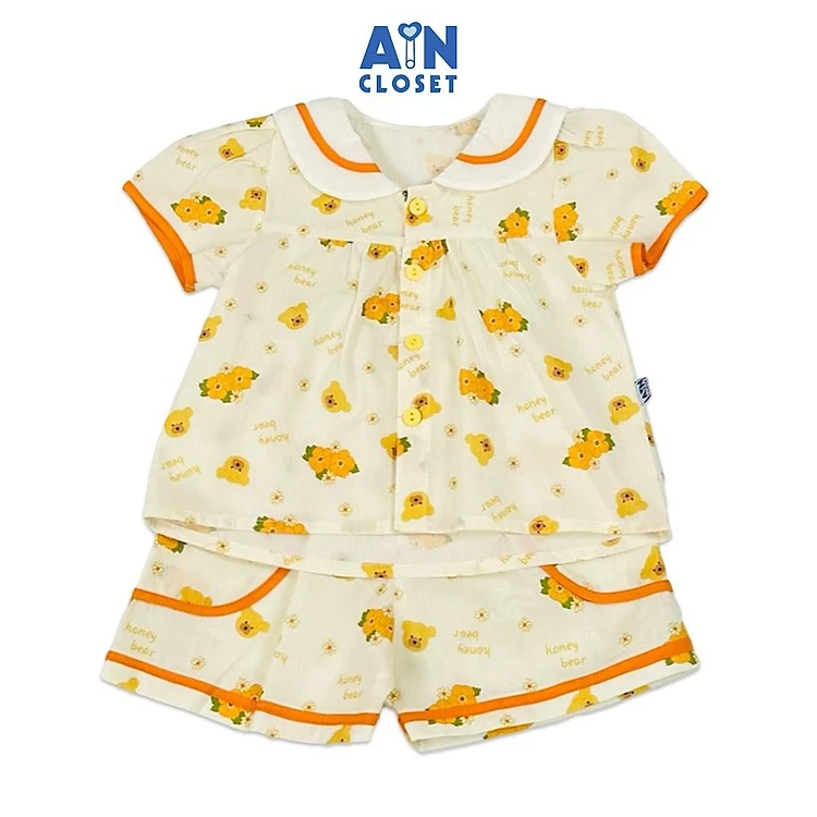 Bộ quần áo Ngắn bé gái họa tiết Honey Bear Cam cotton - AICDBGTCFEKJ - AIN Closet