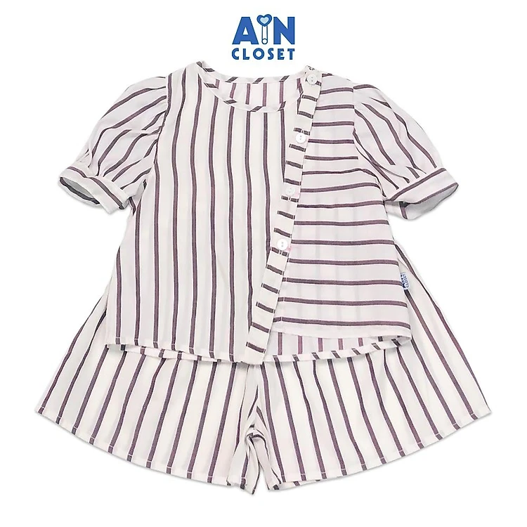 Bộ quần áo ngắn bé gái họa tiết Kẻ Nâu quần váy cotton boi lụa - AICDBGGGYZFN - AIN Closet