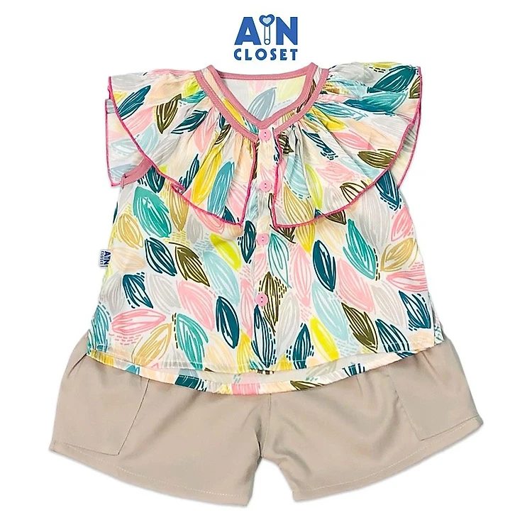 Bộ quần áo ngắn bé gái họa tiết Lá ngũ sắc quần kem - AICDBGTOSXCF - AIN Closet