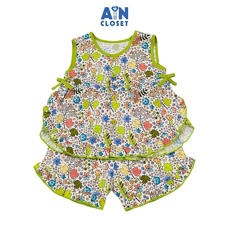 Bộ quần áo Ngắn bé gái họa tiết Lá Phong Xanh Cotton - AICDBGGEDOOT - AIN Closet