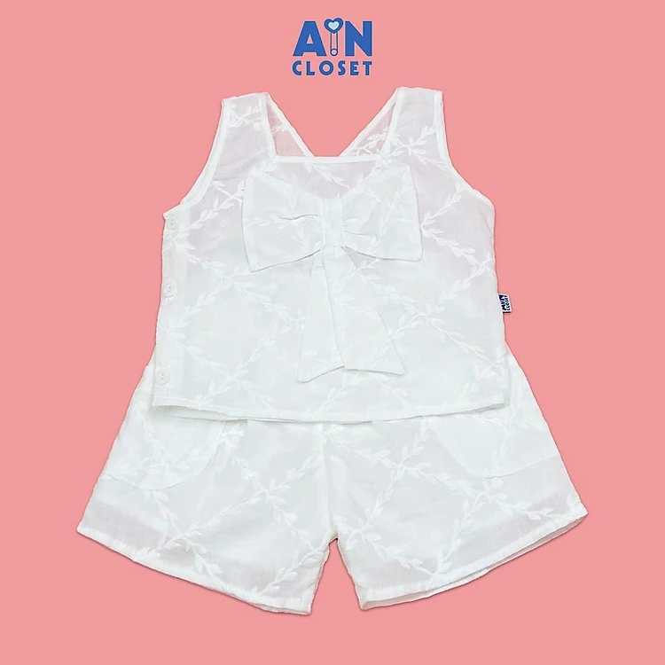Bộ quần áo Ngắn bé gái họa tiết Lá Thêu Trắng Cotton - AICDBGVJ4UDF - AIN Closet