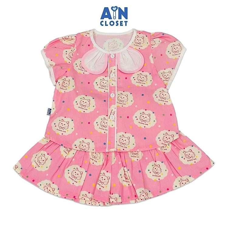 Bộ quần áo Ngắn bé gái hoạ tiết Mèo Hồng Cotton - AICDBGTD0POU - AIN Closet