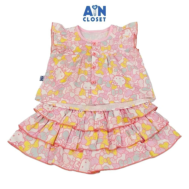 Bộ quần áo Ngắn bé gái họa tiết Mèo Kitty Hồng cotton - AICDBGRUYXSY - AIN Closet