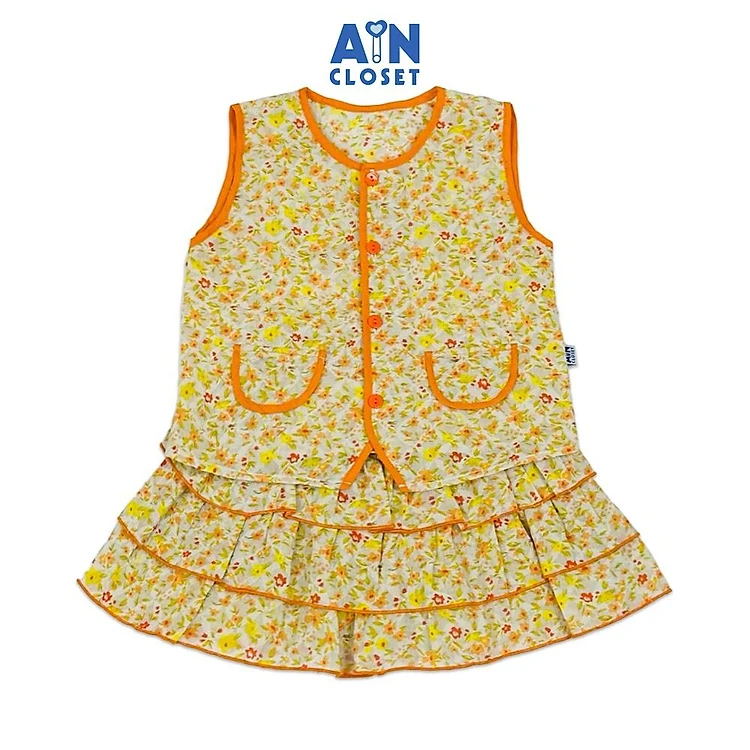 Bộ quần áo Ngắn bé gái hoạ tiết Nhí Cam Vàng Cotton - AICDBGTP25LJ - AIN Closet