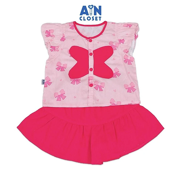 Bộ quần áo Ngắn bé gái hoạ tiết Nơ Bướm Hồng Cotton - AICDBGCISF6J - AIN Closet