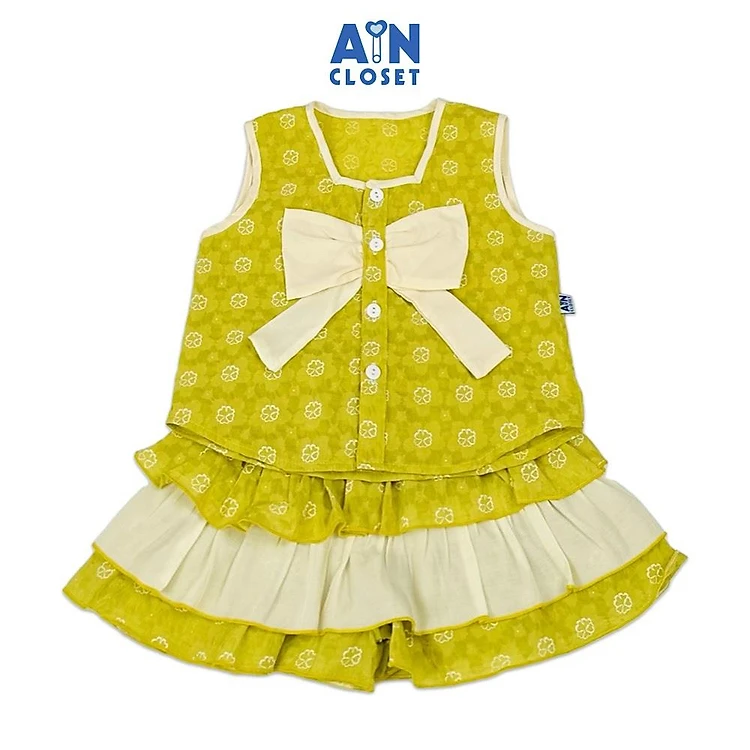 Bộ quần áo Ngắn bé gái hoạ tiết Nơ Xanh Lá Cotton - AICDBGW66FU5 - AIN Closet
