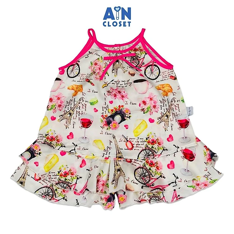 Bộ quần áo Ngắn bé gái hoạ tiết Paris Hồng Lụa Pháp - AICDBGIBCJQ0 - AIN Closet