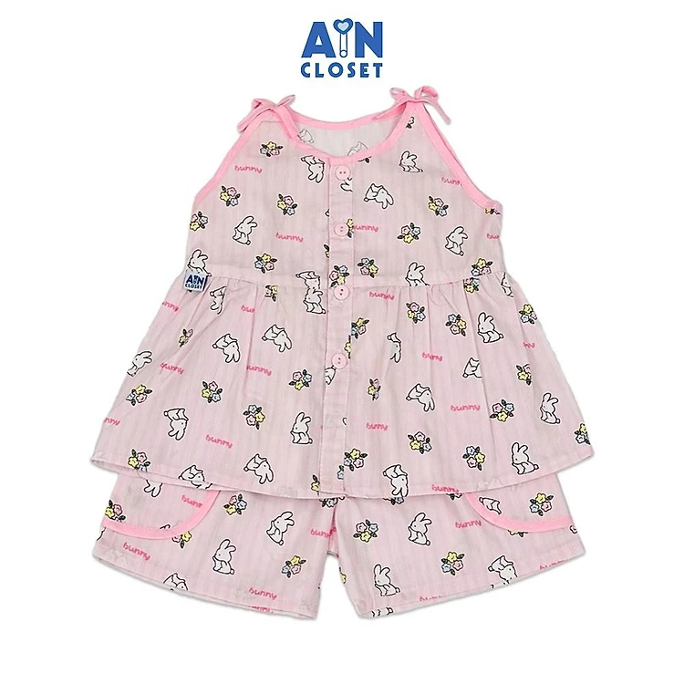 Bộ quần áo Ngắn bé gái hoạ tiết Thỏ Bunny Kẻ Hồng Cotton - AICDBGB1HG2D - AIN Closet