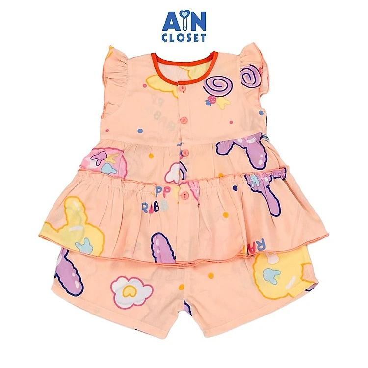 Bộ quần áo Ngắn bé gái họa tiết Thỏ Cam Lanh lụa. - AICDBGMPTOSC - AIN Closet
