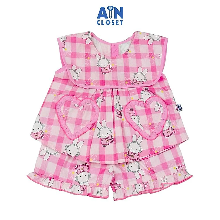 Bộ quần áo Ngắn bé gái họa tiết Thỏ Caro Hồng Cotton - AICDBGBJH0NM - AIN Closet