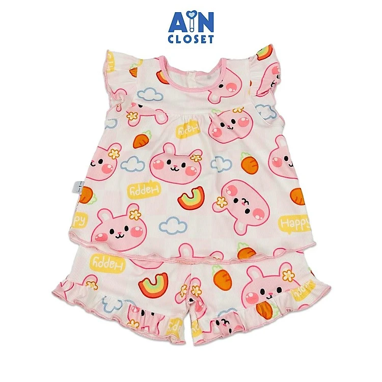 Bộ quần áo Ngắn bé gái hoạ tiết Thỏ Chinchilla Hồng Thun cotton - AICDBGHLUATK - AIN Closet