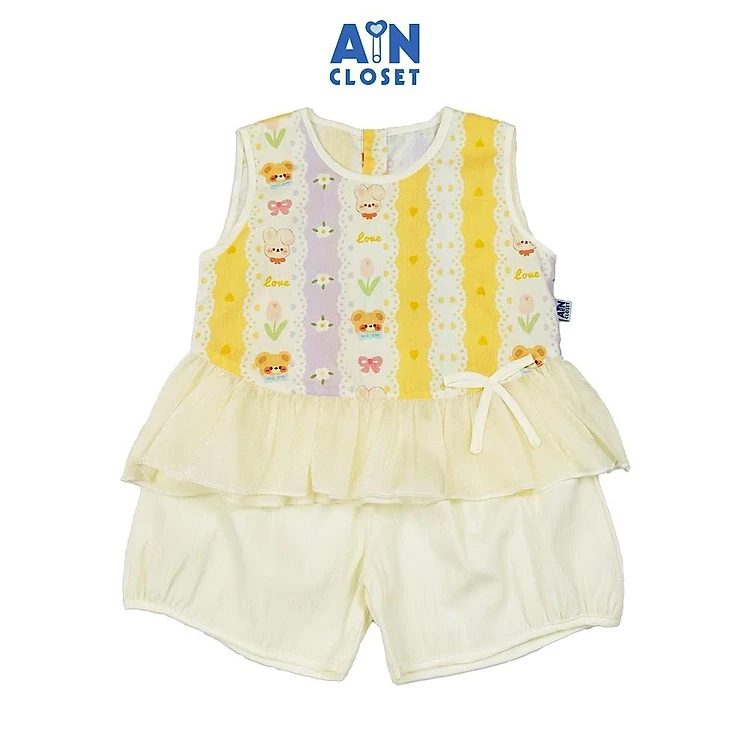 Bộ quần áo Ngắn bé gái họa tiết Thỏ Gấu Kem Cotton - AICDBGE238FW - AIN Closet