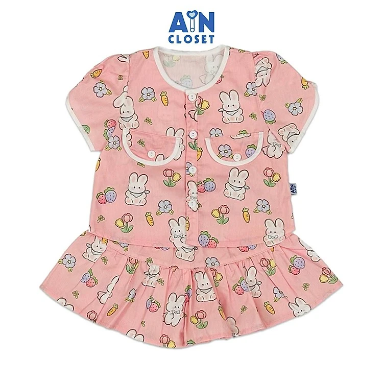Bộ quần áo Ngắn bé gái hoạ tiết Thỏ Hồng Carrot Cotton - AICDBGOZQQLB - AIN Closet