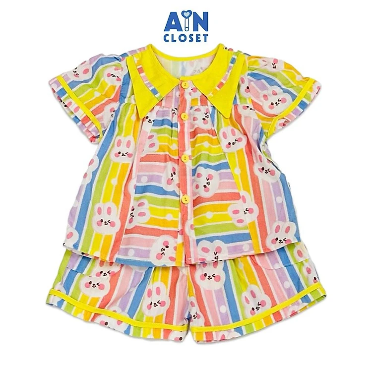 Bộ quần áo Ngắn bé gái họa tiết Thỏ Kẻ Vàng cotton - AICDBGGXDHEX - AIN Closet
