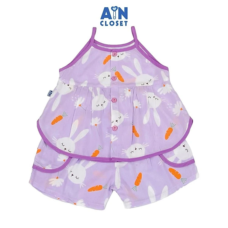 Bộ quần áo Ngắn bé gái họa tiết Thỏ Tím Lanh lụa. - AICDBGFRPYXO - AIN Closet