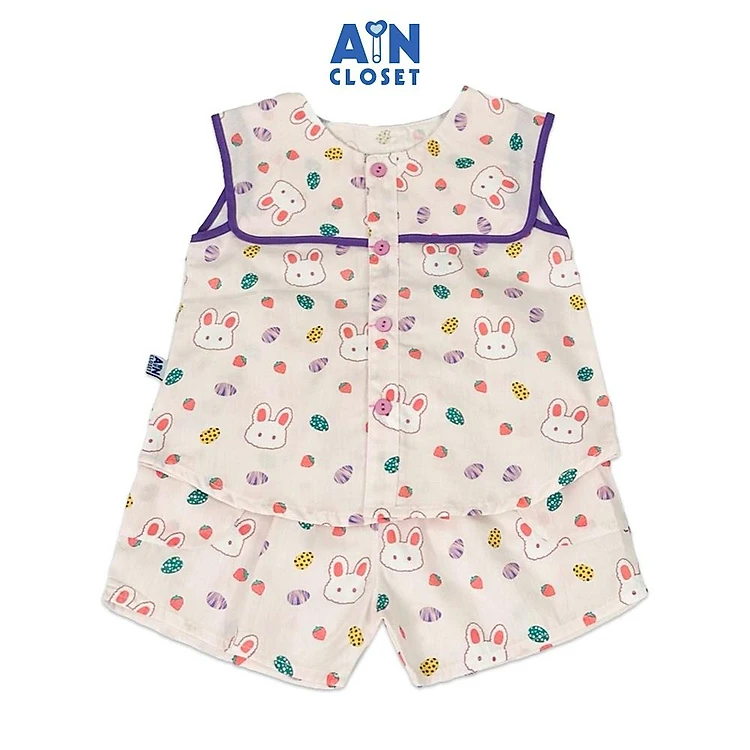 Bộ quần áo Ngắn bé gái họa tiết Thỏ Tím Lông Xù cotton - AICDBGEDVZUQ - AIN Closet