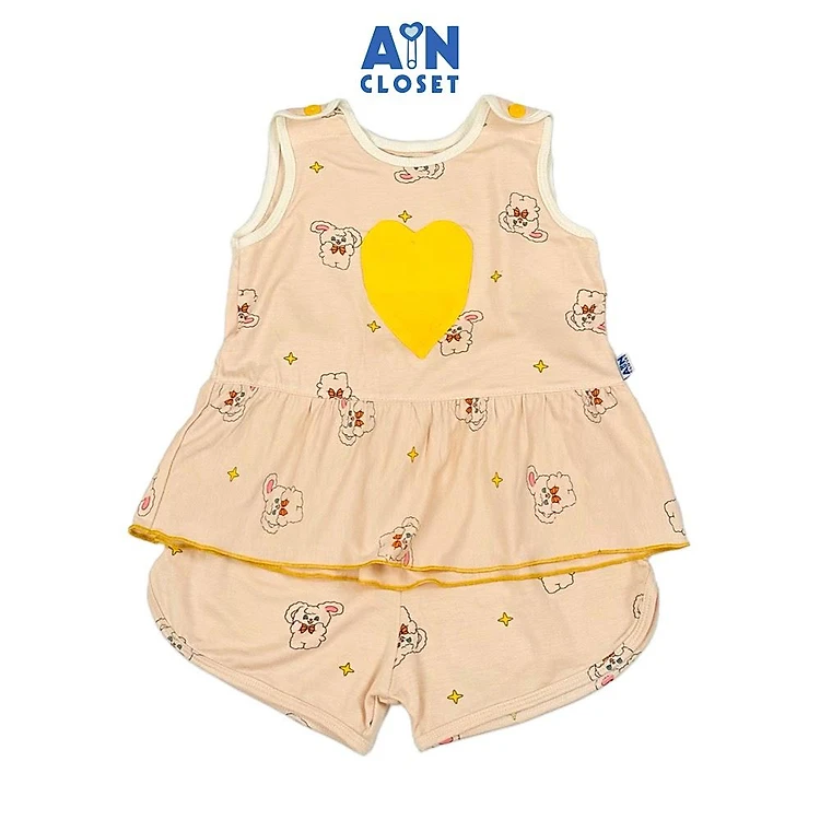 Bộ quần áo Ngắn bé gái họa tiết Thỏ Tim Vàng thun lụa - AICDBGZLLWIX - AIN Closet