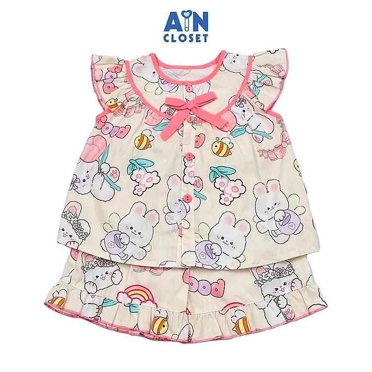 Bộ quần áo Ngắn bé gái họa tiết Thỏ Và Ong Vàng Cotton - AICDBGZUPJXU - AIN Closet