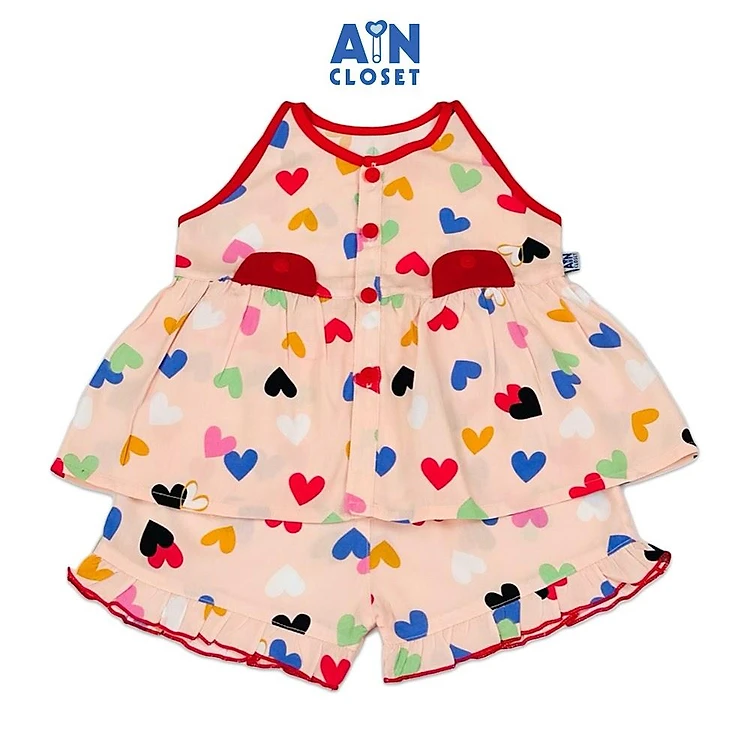Bộ quần áo Ngắn bé gái hoạ tiết Tim Đỏ Lanh lụa - AICDBGV5RJMR - AIN Closet