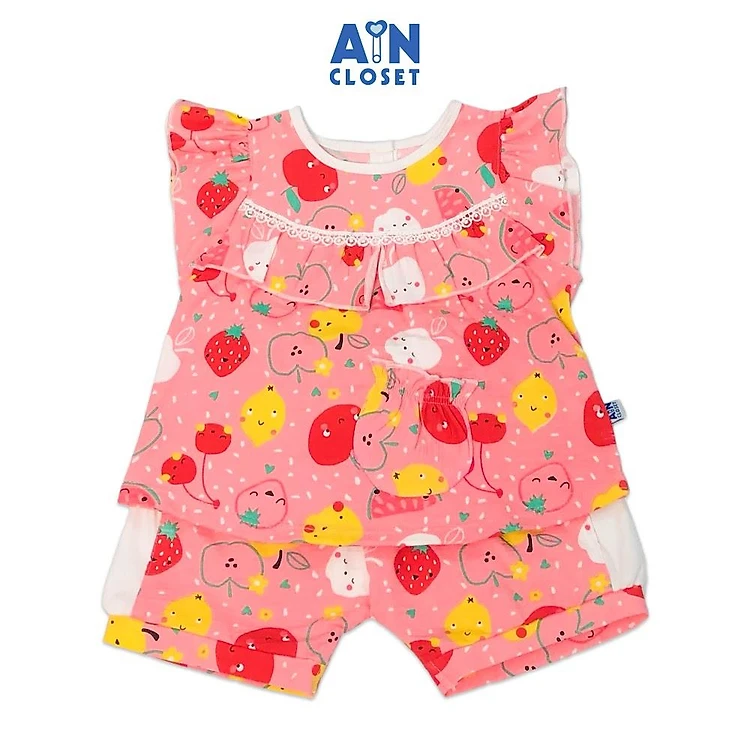 Bộ quần áo ngắn bé gái họa tiết Trái cây hồng thun cotton - AICDBGU0NK8V - AIN Closet