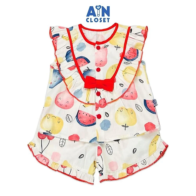 Bộ quần áo ngắn bé gái họa tiết Trái Cây nơ đỏ cotton - AICDBGWMWDSS - AIN Closet