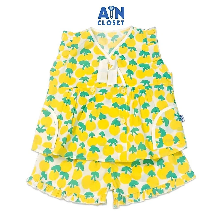 Bộ quận áo ngắn bé gái họa tiết Tulip vàng cotton - AICDBGC7ZGSP - AIN Closet