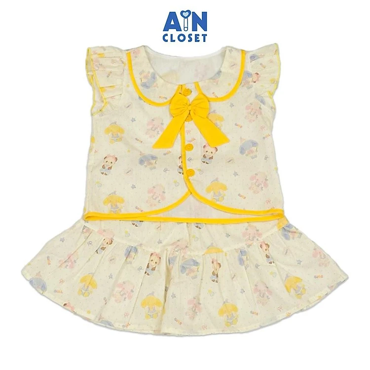 Bộ quần áo Ngắn bé gái hoạ tiết Voi Nơ Vàng Cotton - AICDBGN58850 - AIN Closet