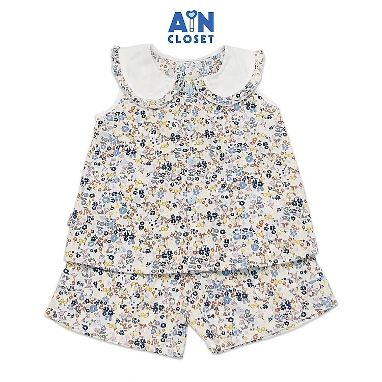 Bộ quần áo ngắn bé gái họa tiết Vườn nhí xanh cotton - AICDBG28UMJC - AIN Closet
